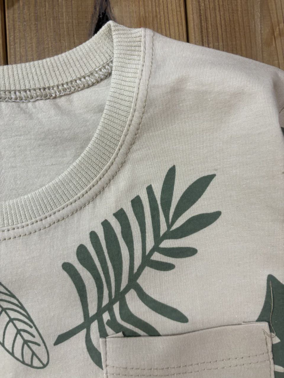 تیشرت شلوارک برگ کرمی